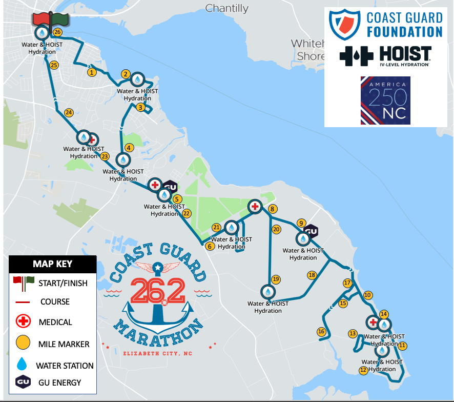 Due to current government restrictions limiting access to military installations, the Coast Guard Marathon and Half Marathon courses have been adjusted and will no longer include running on Base Elizabeth City this year.